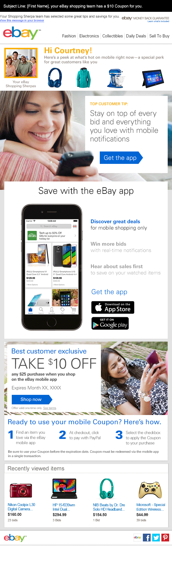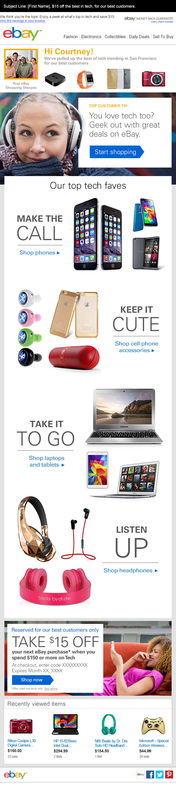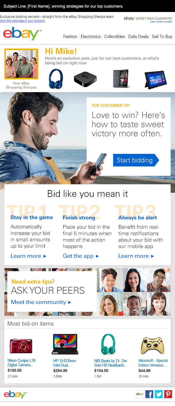 Email campaign targeting eBay's high value customers based specifically on gender and user data.