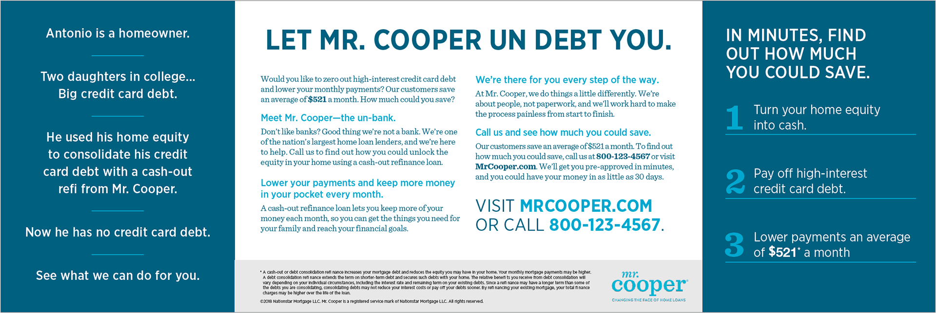 A multi-channel campaign designed to show how Mr. Cooper can relieve customers of their high interest credit card debt and lower their monthly payments.