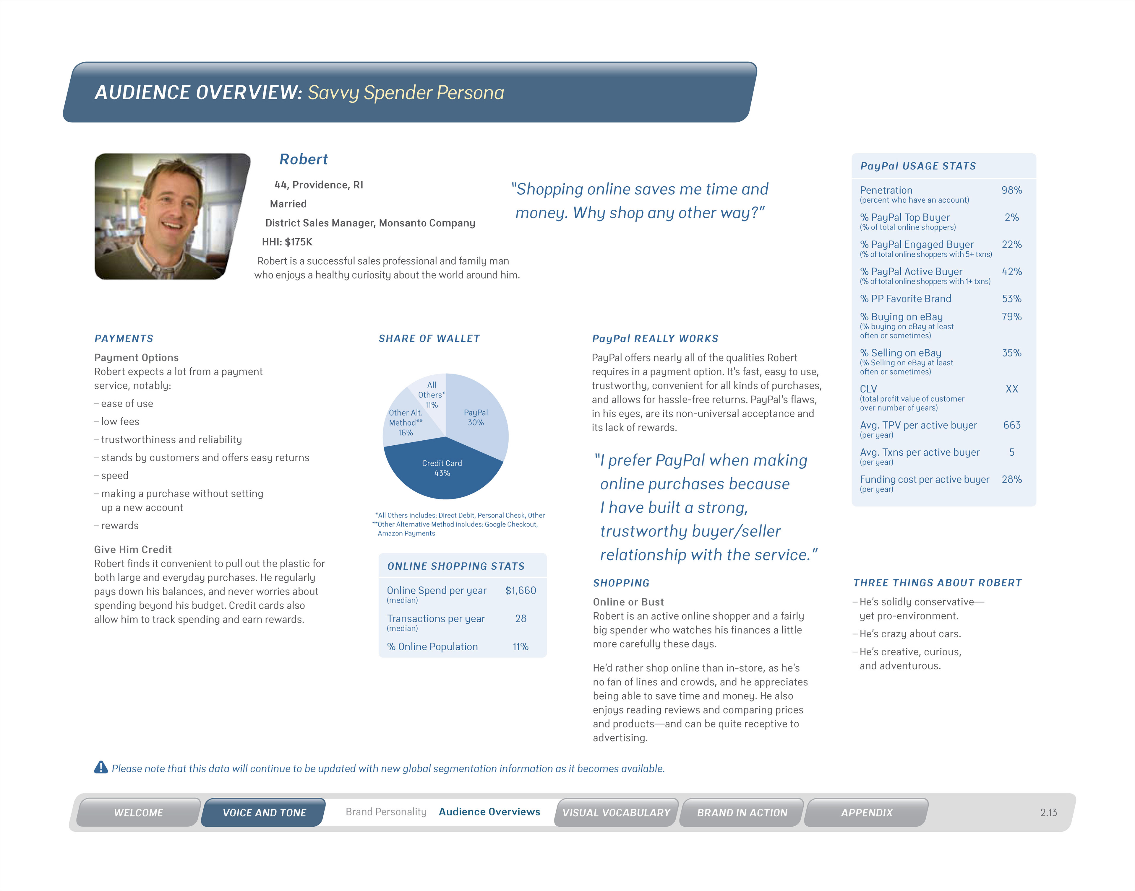 Brand Sourcebook that established design guidelines for incorporating PayPal’s brand in the global marketplace. Guidelines included voice and tone, logo specifications, color palette, photography style, graphic elements, and sample marketing materials.